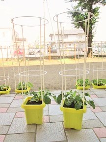 組み立てた支柱を花組さん、つぼみ組さんの鉢に立てました!!