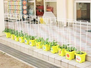 朝顔がグングン伸びる準備です!! 楽しみですね(^^)♪