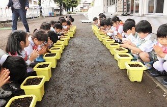 「大きくな~れ。きれいなお花が咲きますように・・・」