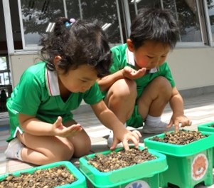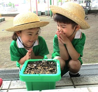 「大きくな~れ。きれいなお花が咲きますように・・・」