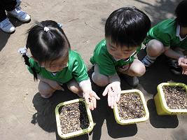 ≪ゆきぐみ≫ 今日は体育でしたので、体育着で種蒔きです♪