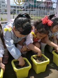 ≪はなぐみ≫ 先生と一緒に種蒔きです♪