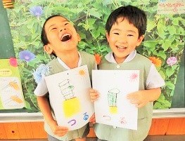 月組さん、雪組さんは夏休み中に朝顔観察画の宿題があります。