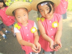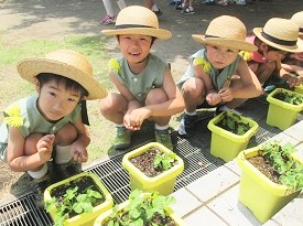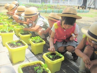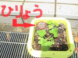 みんなで種まきした朝顔に、肥料をまきました。