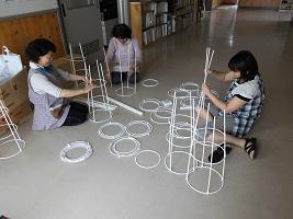 先生達が組み立てた支柱を 花、雪、つぼみ組の鉢に立てました!!