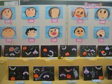 ≪花組(上段) 自分の顔を描きました≫ ≪雪組(下段) 折り紙製作 ハロウィンです≫