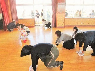 月組の子供たちも遊戯室を使うときに雑巾がけを行いましたが、