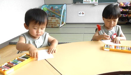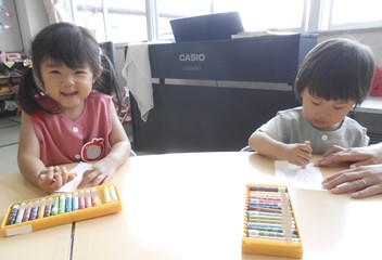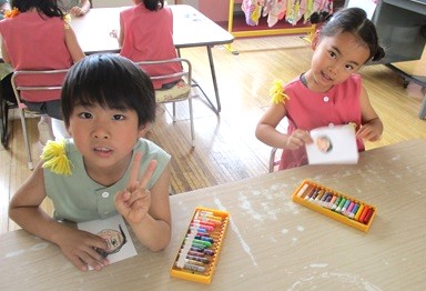 今日は、つぼみ組さんと月ぐみさんが心を込めてプレゼントのお絵かきをしました。