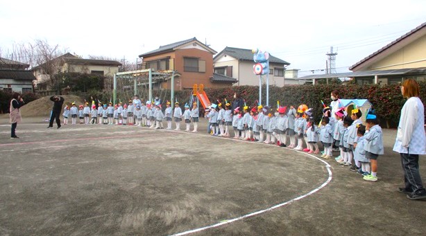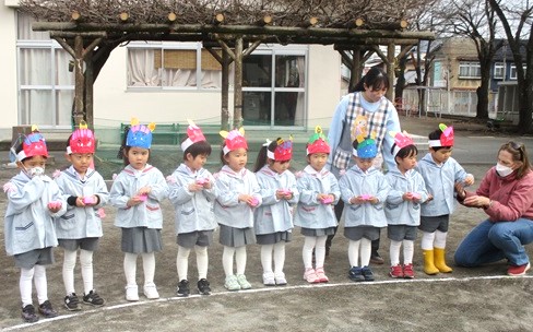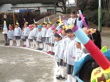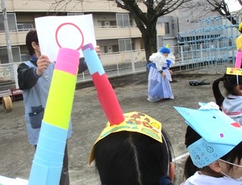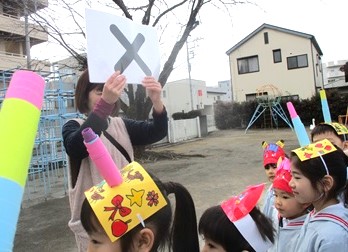 「鬼は~そと! 福は~うち!!」の掛け声が園庭に響き