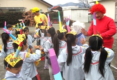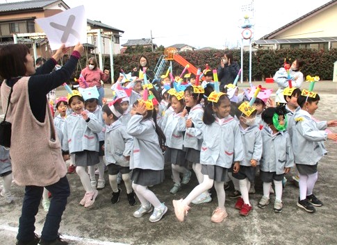 お手紙をくれた吾妻山の鬼たちと一緒に「節分〇×クイズ」で楽しみました。