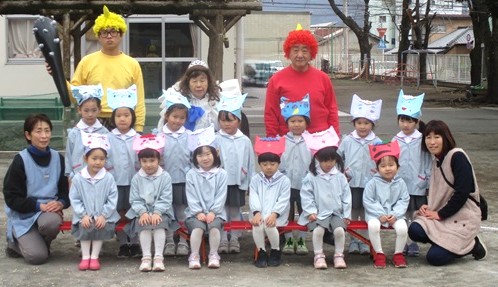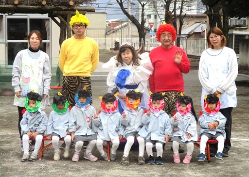 仲良しになった鬼と一緒にみんなで記念撮影をしました。