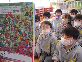 楽しく子供たちと絵本を読む≪絵本観察≫を行っています。