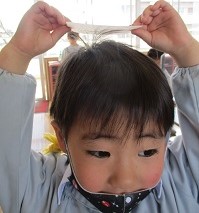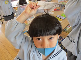 その後は、絵本の中のシール遊びや鬼のお面づくりで楽しみ、