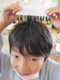 最後には、鏡の前に立ち 逆立つ髪の毛に大爆笑でした!