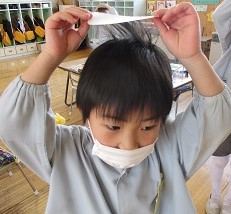 子供たちは静電気で浮き上がる髪の毛に驚きの声をあげていました。