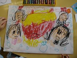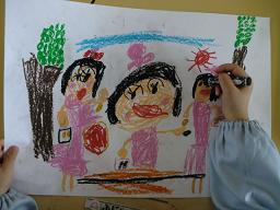 2月3日の、まめまきとお餅つきの思い出画を描きました。