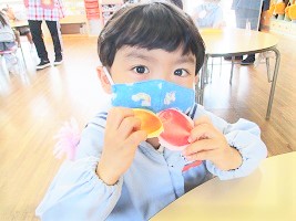 火曜日は糊付けをして、くだものやさんの完成になります(^^)/