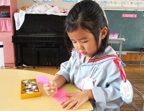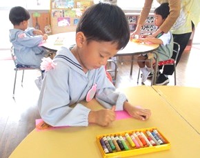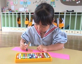 はじき絵を使って、車に模様や彩りを加えていきます。