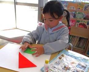 色々な形を見つけながら、画用紙にのり付けして完成したのは・・・。
