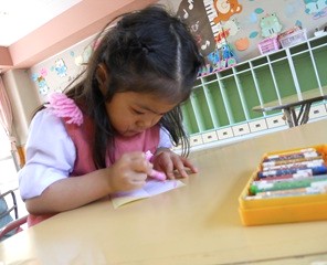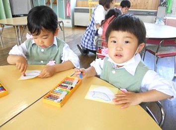 まだまだクレヨンで絵を描くことに慣れていない子もいますが、