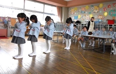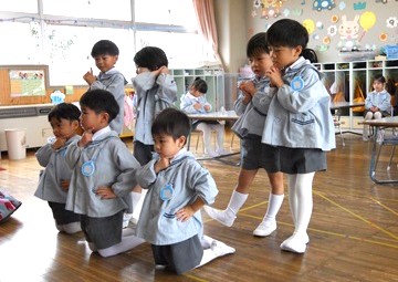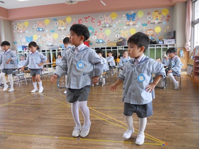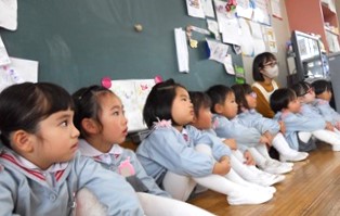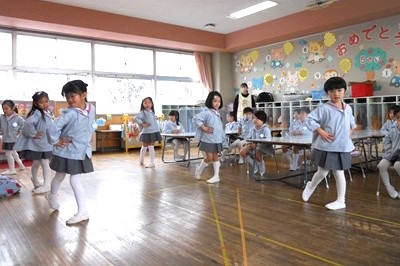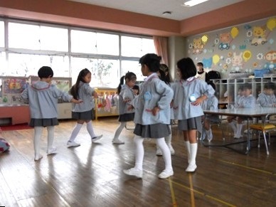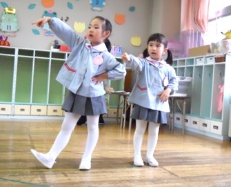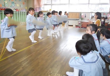 大きなクラスのお友達に見てもらえると、うれしくなっちゃう花組さん。