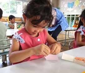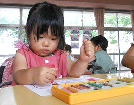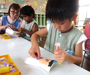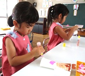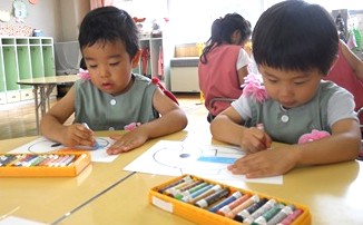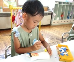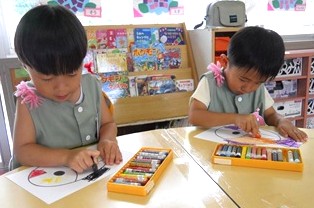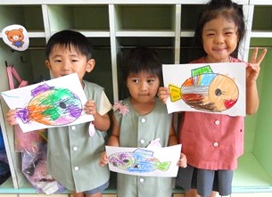 花組さんは、大きなお魚の色塗りを頑張りました。