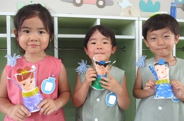 雪組さんは紙コップを使って織姫様と彦星様を作っています。