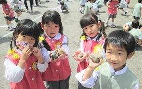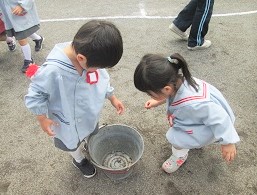 ≪園内美化≫を目標に園庭の石拾いを行いました。