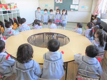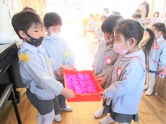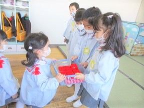 つぼみ組さん・はな組さん・ゆき組さんにプレゼントをしました。