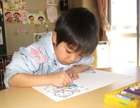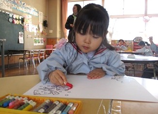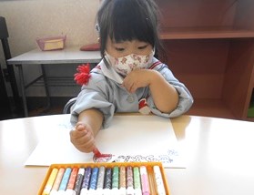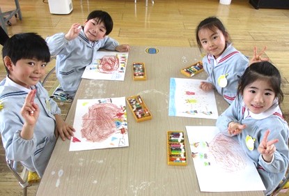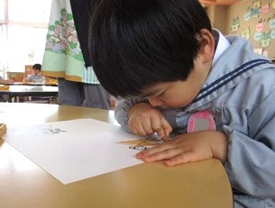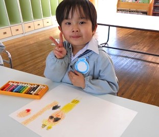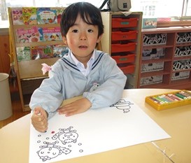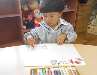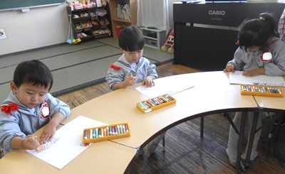 その後は各クラスに戻り、豆まきの楽しかった思い出をお絵描きしました。