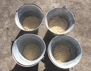 バケツいっぱいのお豆を収穫しました(^^)