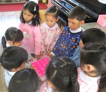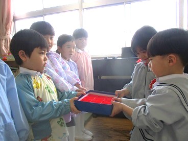 つぼみ組さん・はな組さん・ゆき組さんにプレゼントをしました。