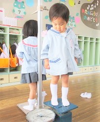 幼稚園では、毎月クラスごとに身体測定を実施しています。