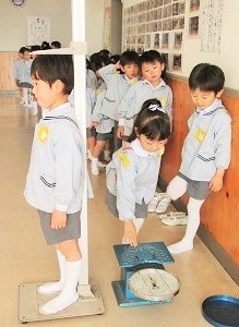 毎月、クラスごとに身体測定を実施します。