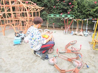 幼稚園では日々、園庭安全確認と放課後の遊具点検を行っております。
