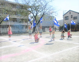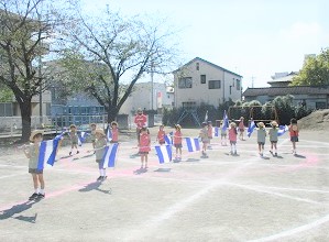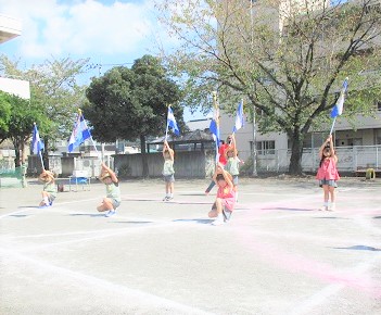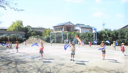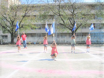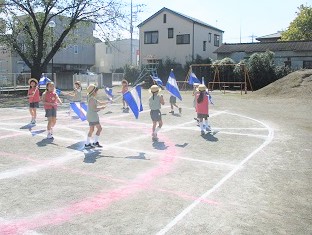 園庭で自分の位置を確認しながら練習を行いました。