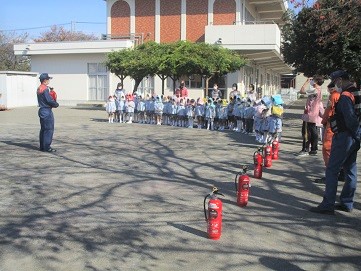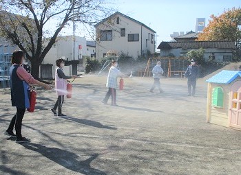 今月の避難訓練は ≪出火≫を想定して行いました。