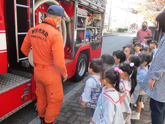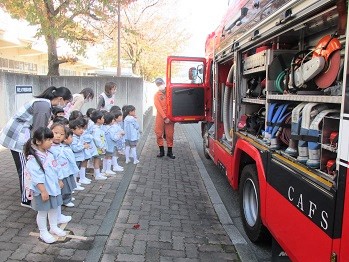 その後は化学消防ポンプ自動車を全クラスで見学させていただき、