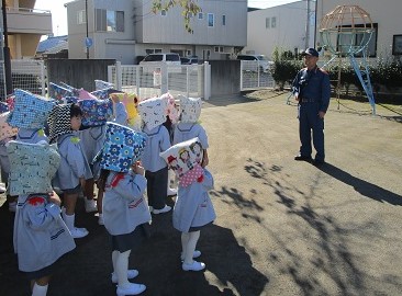 避難訓練の合図後、放送をしっかりと聞いて速やかに戸外へ!