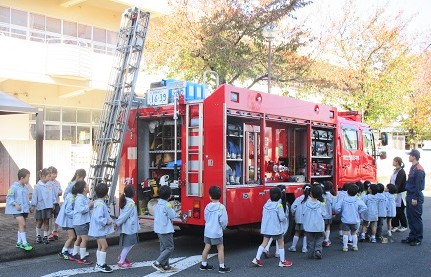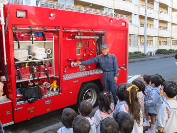その後は化学消防ポンプ自動車を全クラスで見学させていただき、