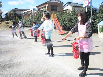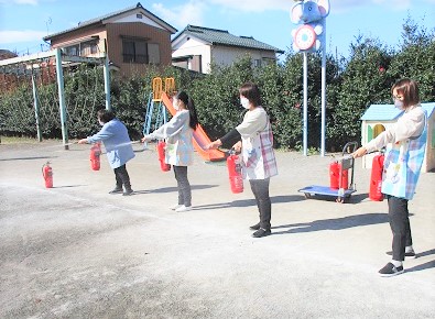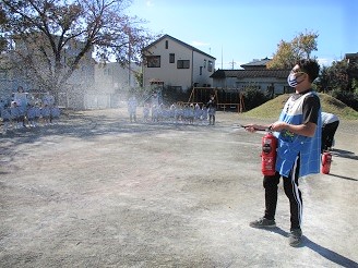 今月の避難訓練は ≪地震からの出火≫を想定して行いました。