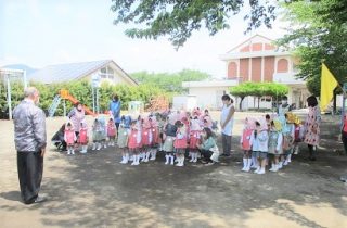 花組さんもつぼみ組さんも、園庭避難は初めてでしたが