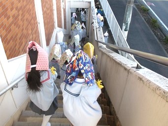 いつもと違う避難経路、そしていつもとは違う時間の訓練に緊張しながらも