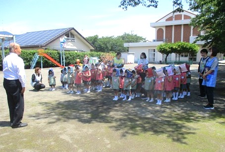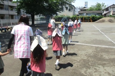 その後は園庭に避難をし、「お・は・し」のお約束をして