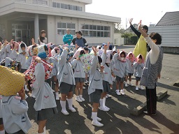 いつもと違う避難経路に子供たちもちょっとドキドキしたのかな??