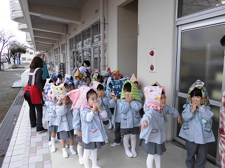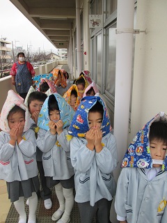 今日の天気に合わせて各クラスの避難場所を変更し、訓練しました。