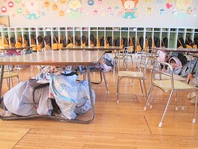 避難ベルが鳴ったあと机の下に隠れて