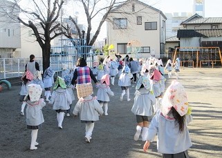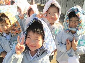 2度目の放送で園庭に避難しました。