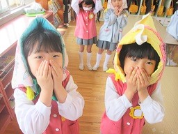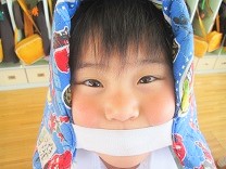 今回、新入園の子どもたちは初めて訓練を体験するということで