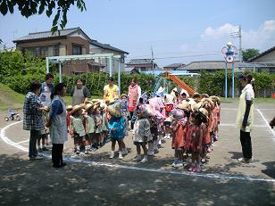 年少、年中、2歳児は 園庭で遊んでいる途中での